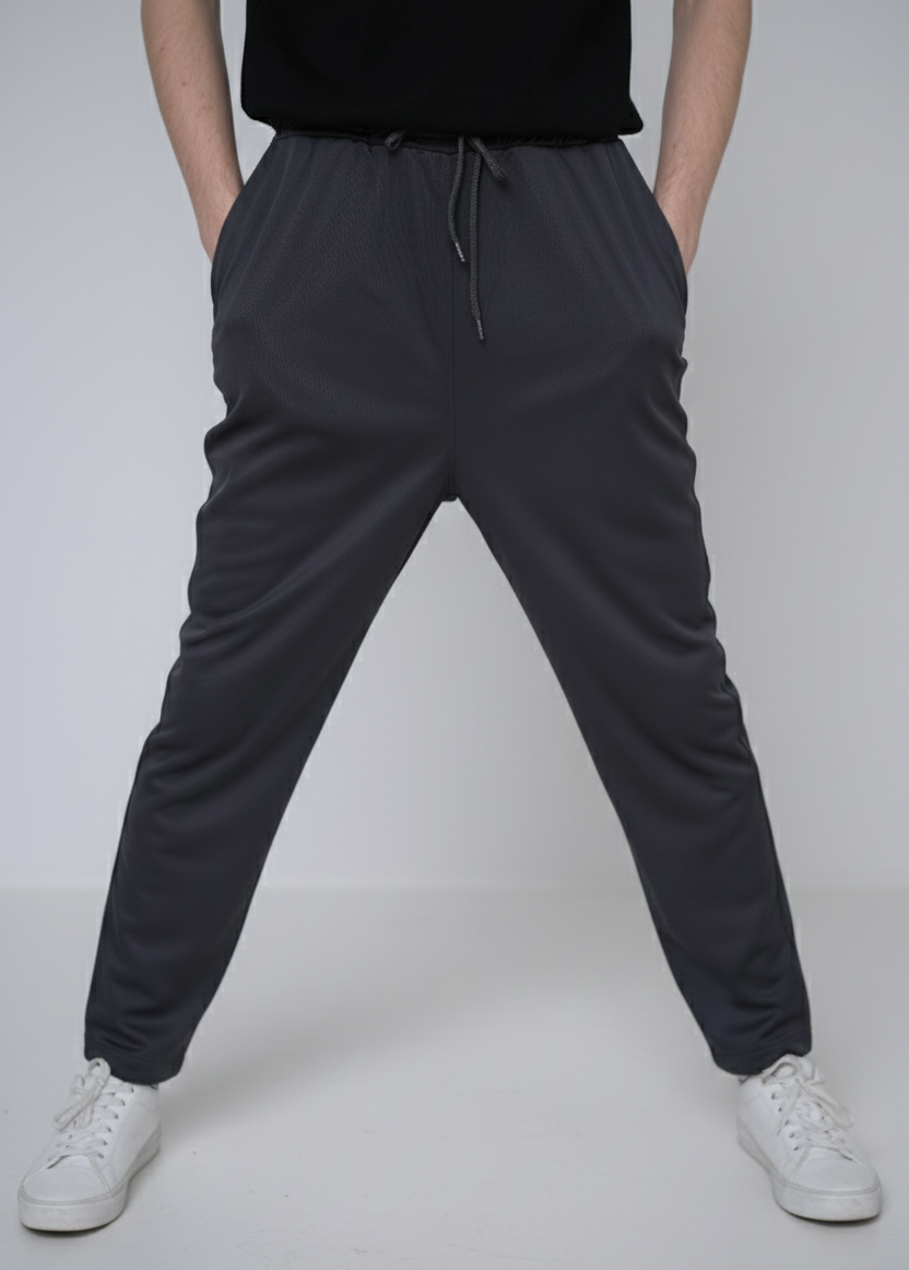 ActiveFlex Joggers made with soft, stretchable performance fabric—perfect for gym, running, and daily wear. Features zip bone pockets for secure storage and a comfortable slim-fit design in Charcoal Grey.