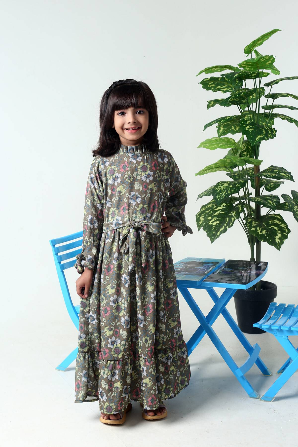 This beautiful dress, crafted from premium georgette fabric, offers a perfect blend of comfort and elegance. The soft floral print enhances its charm, making it a delightful choice for any occasion. Featuring a stylish belt, it allows for an adjustable and flattering fit. With its graceful silhouette and ruffle details.