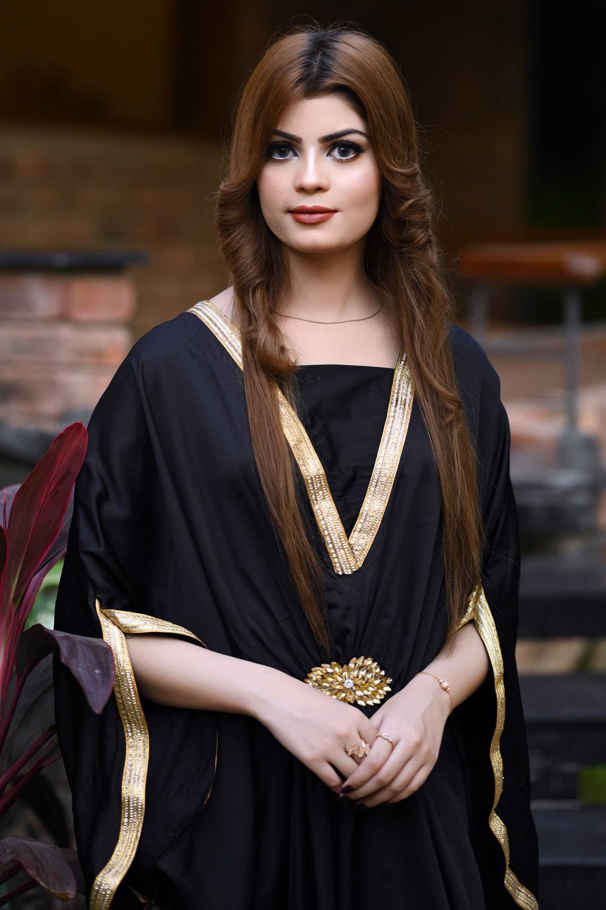 Introducing the Chiragh kaftaan in a classic black shade, made from soft silk fabric. This design features fine silk with golden lace and a crystal-style brooch for added flair. The trousers also include golden lace detailing for a coordinated look. Ideal for festive occasions or stylish events, this kaftaan provides comfort and a touch of sophistication, making it a great addition to your wardrobe.