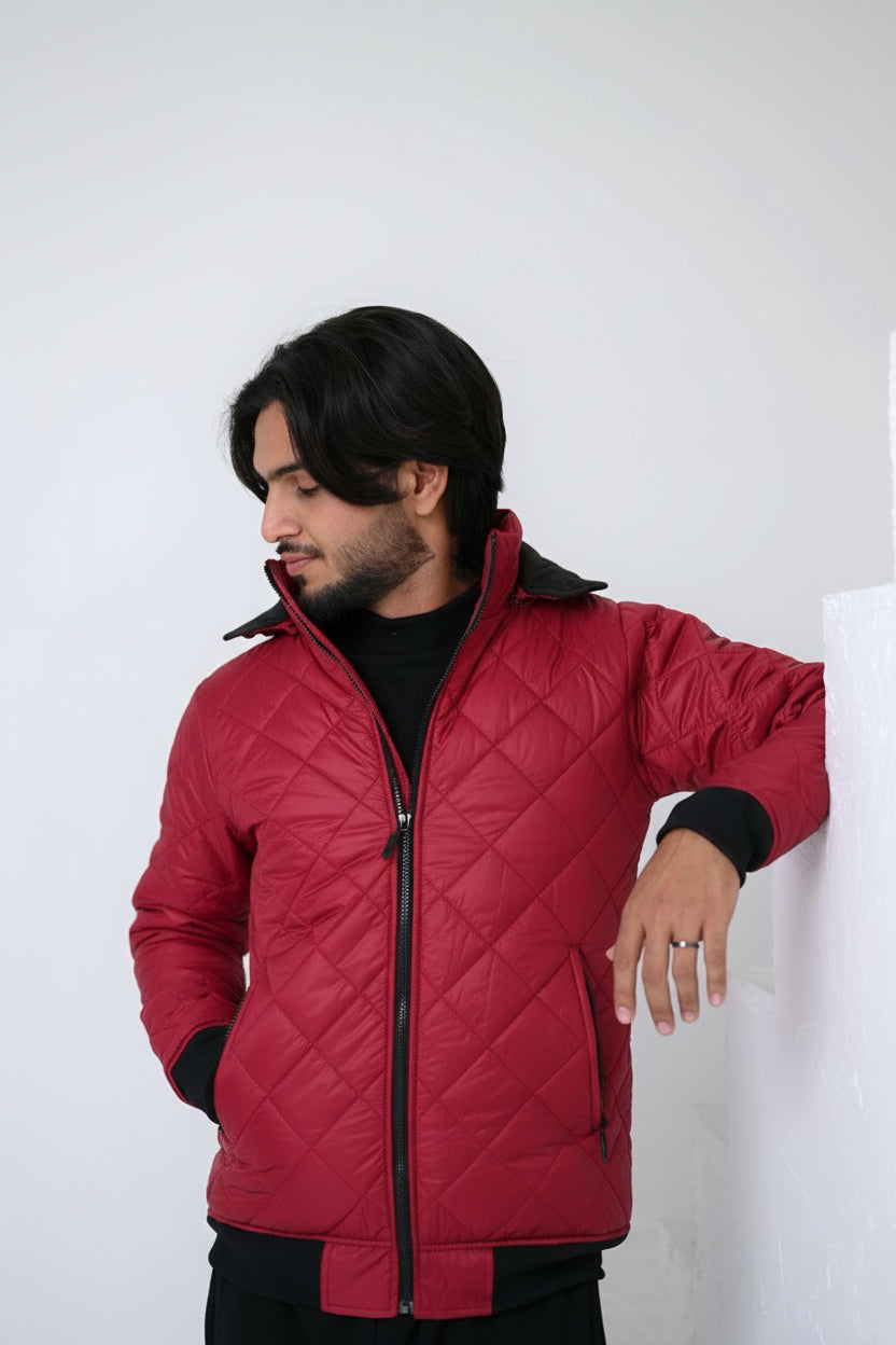 A lightweight quilted puffer with a sleek attached hood, smooth zipper front, and ribbed hem for a snug winter fit. Warm, stylish, and perfect for everyday layering.