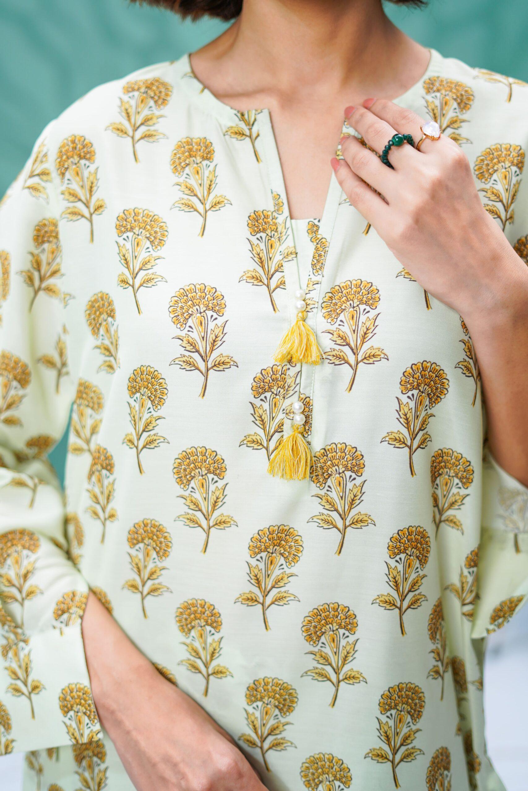 Edan Glain, crafted from soft Swiss Lawn, this elegant ensemble is adorned with tassels and moti details, adding a touch of timeless charm. Light, graceful, and effortlessly chic.