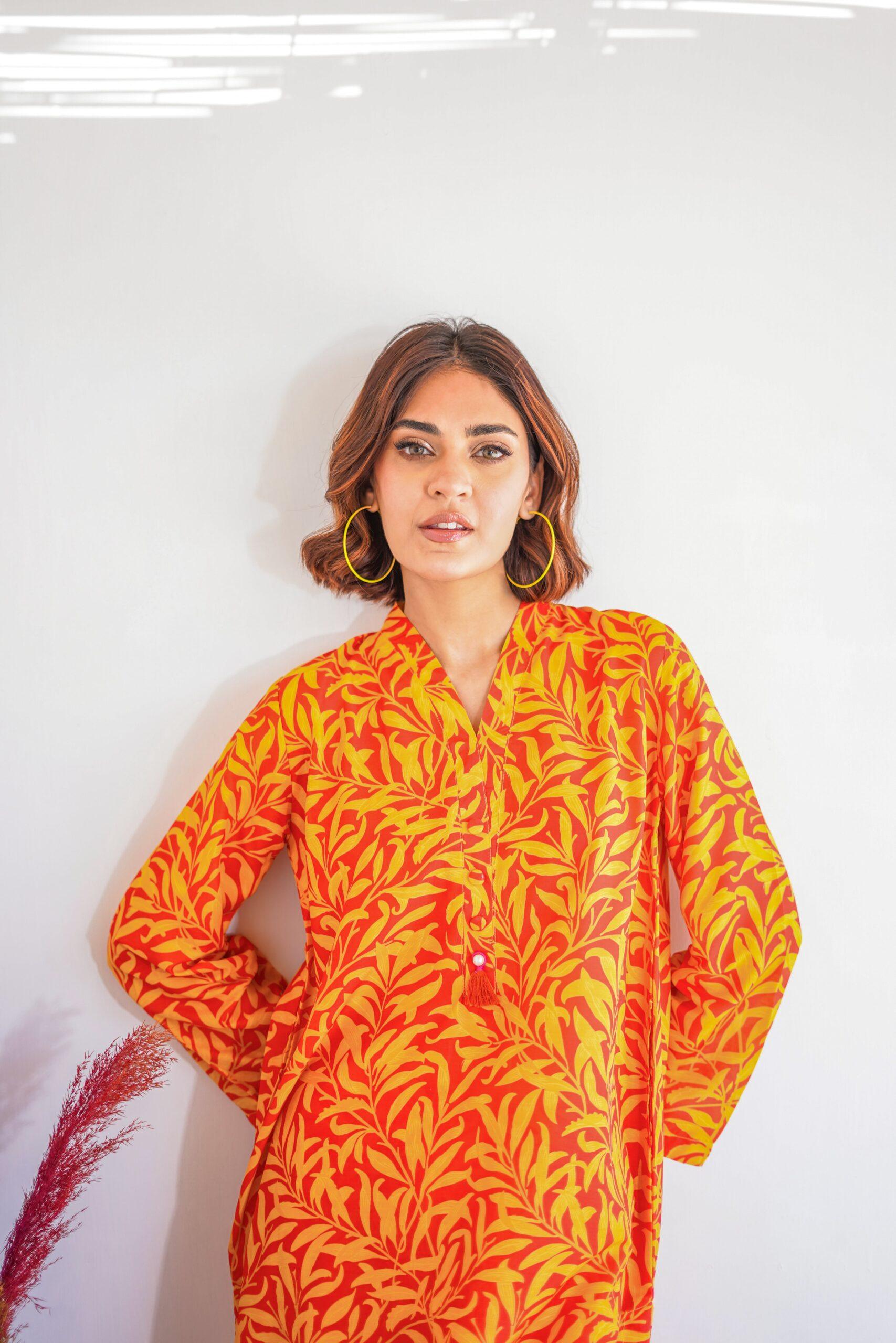 Crafted from breathable Swiss Lawn, this vibrant ensemble features fabric button tassels and delicate moti details, adding a refined charm. Effortless, graceful, and made to stand out.