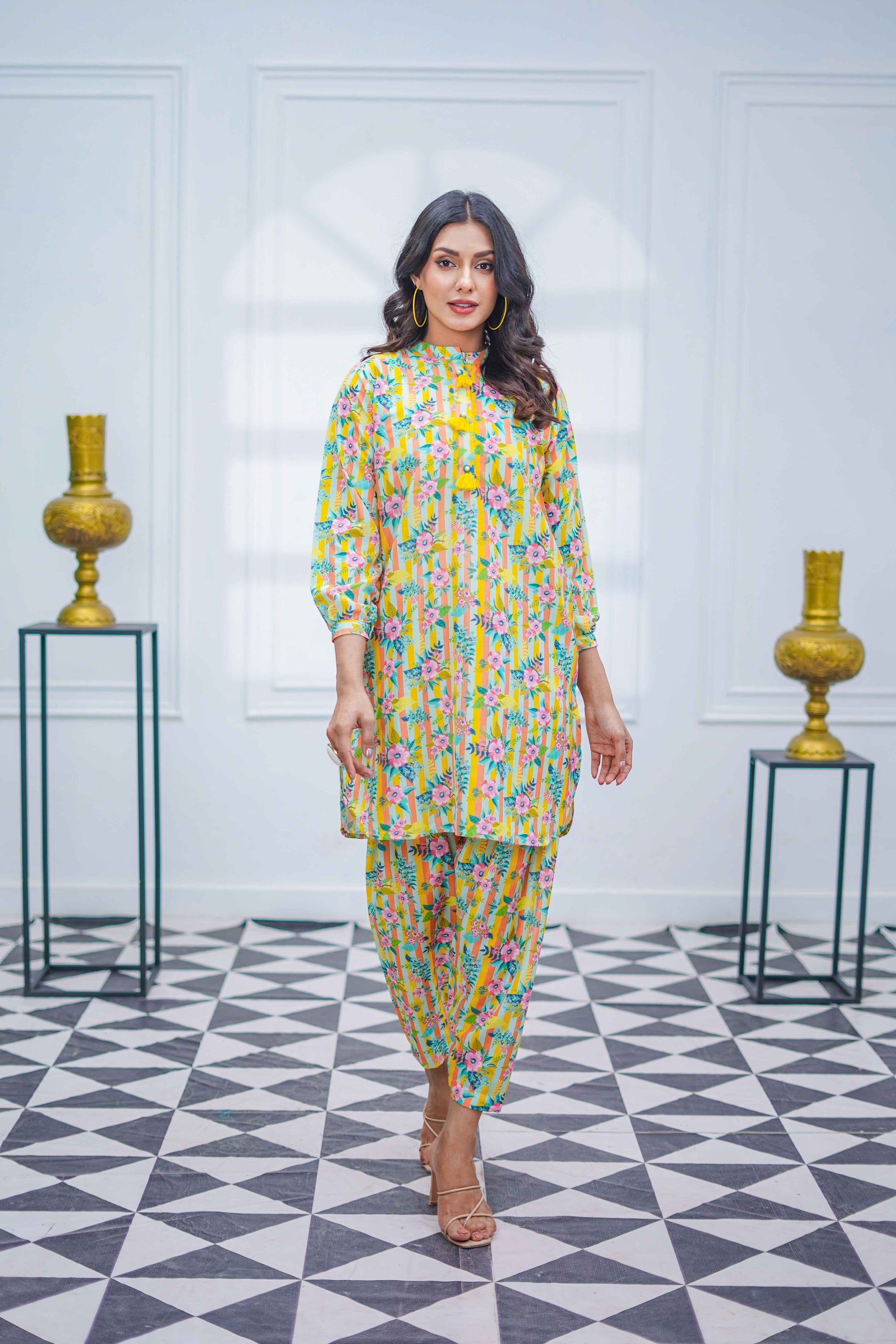 Spring Symphony is adorned with tassels, moti, and a sleek gum zip at the bottom,