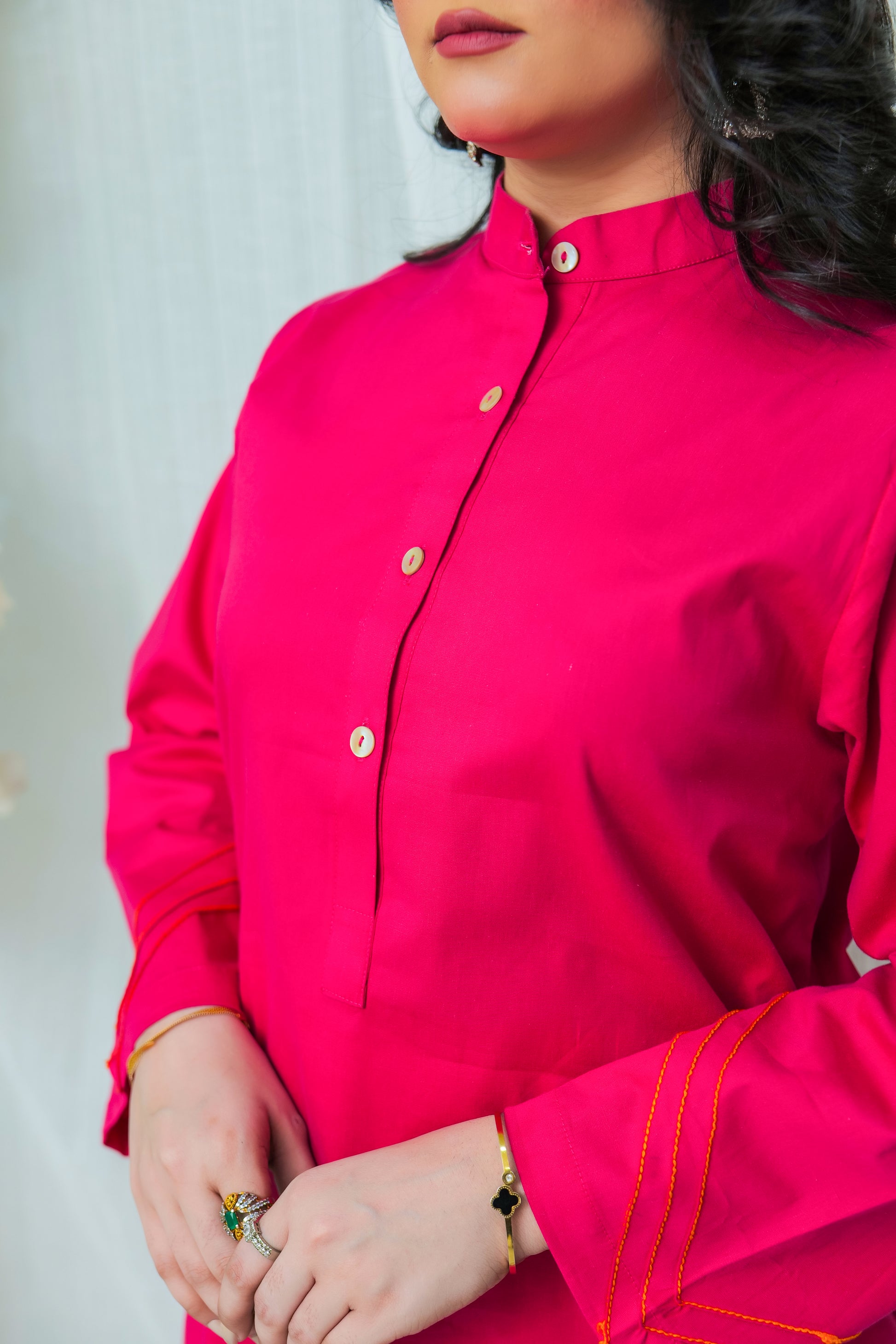 Bright, breezy, and beautifully refined — the Roselia 2-Piece Set is made to lift your mood and your style. Rendered in a radiant raspberry pink hue, this modern Eastern ensemble is crafted from breathable, premium cotton for all-day comfort and ease.